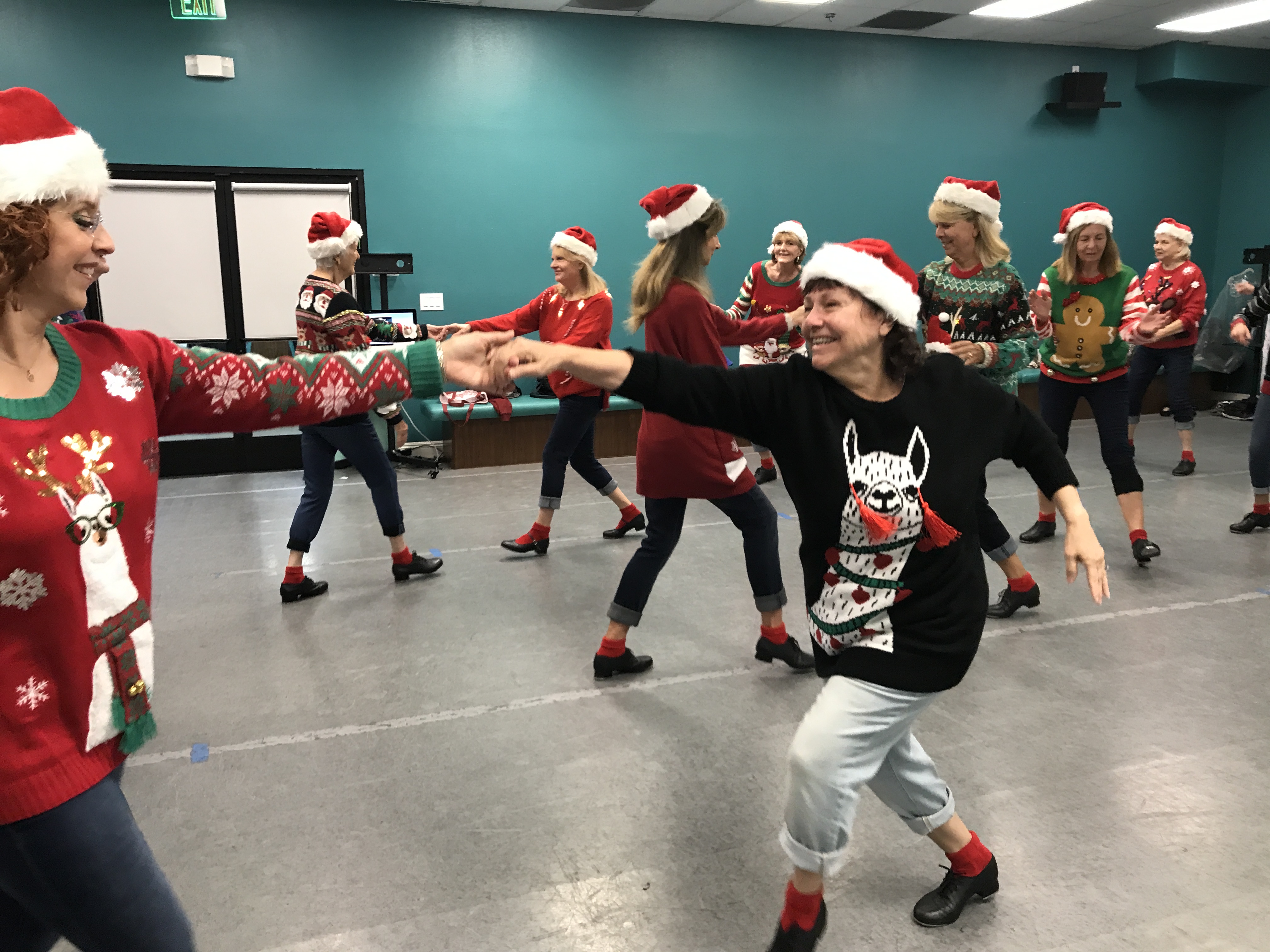 The Young @ Heart Tappers do more than just attend class and perform. Over the years we have attended numerous professional theater performances at Candlelight Pavillion and other places around the LA area. We are a social group as well with several smaller get togethers celebrating birthdays, attending fund raisers for our favorite charities, and ending the year with a large pot-luck luncheon Christmas party.